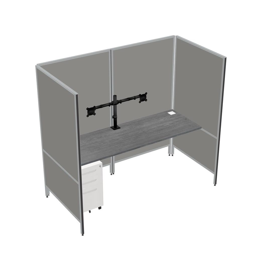 Grey Flexible Panel System For 1 + Metal Mobile Drawers + Monitor Arm (double Arms)