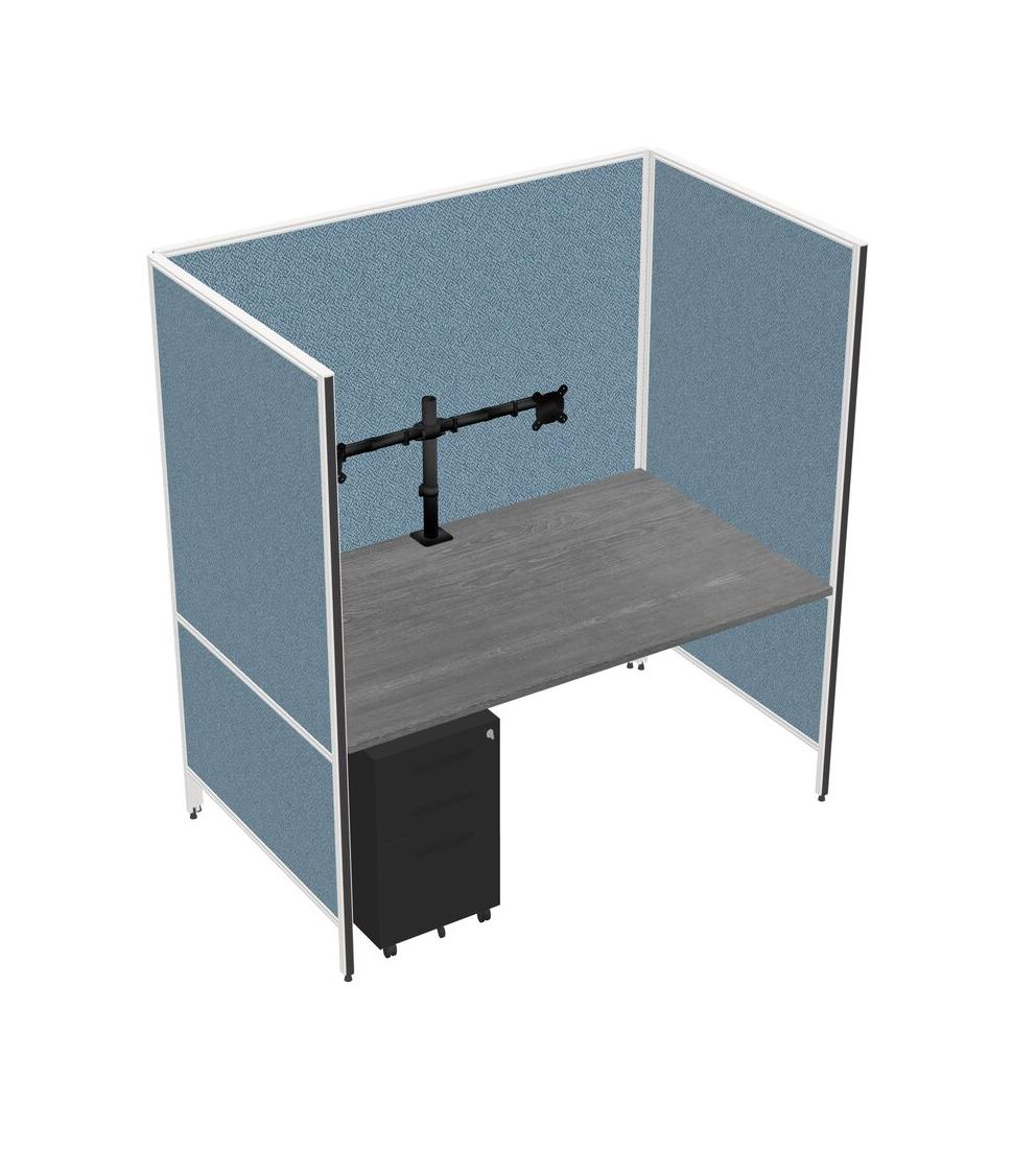 Grey Flexible Panel System For 1 + Metal Mobile Drawers + Monitor Arm (double Arms)