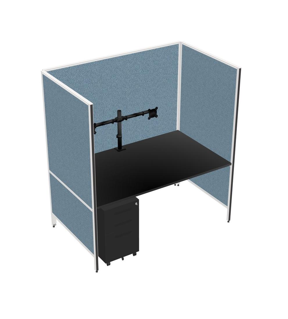 Black Flexible Panel System For 1 + Metal Mobile Drawers + Monitor Arm (double Arms)