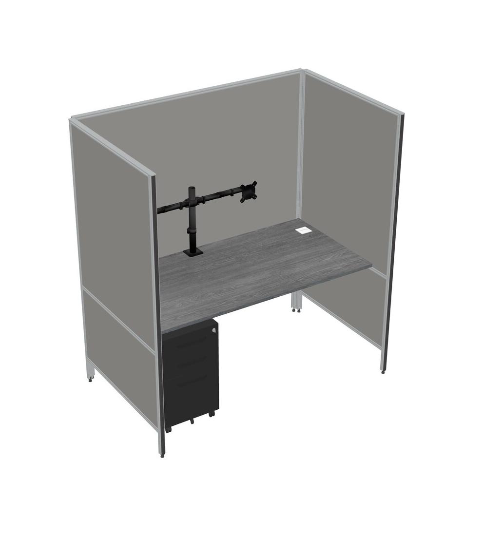 Grey Flexible Panel System For 1 + Metal Mobile Drawers + Monitor Arm (double Arms)