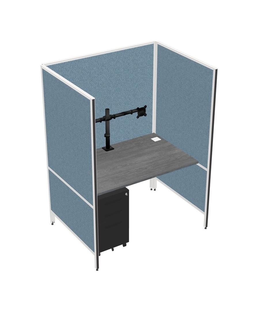 Grey Flexible Panel System For 1 + Metal Mobile Drawers + Monitor Arm (double Arms)