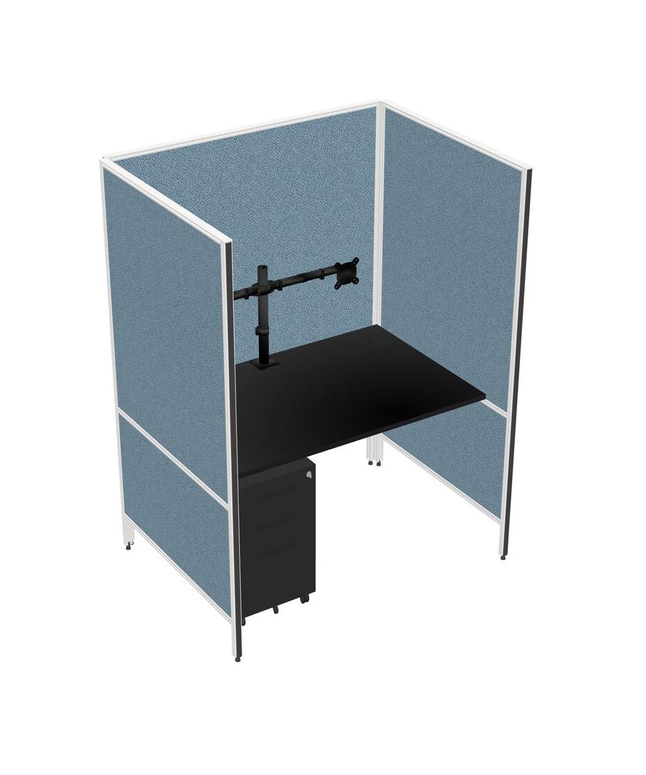 Black Flexible Panel System For 1 + Metal Mobile Drawers + Monitor Arm (double Arms)