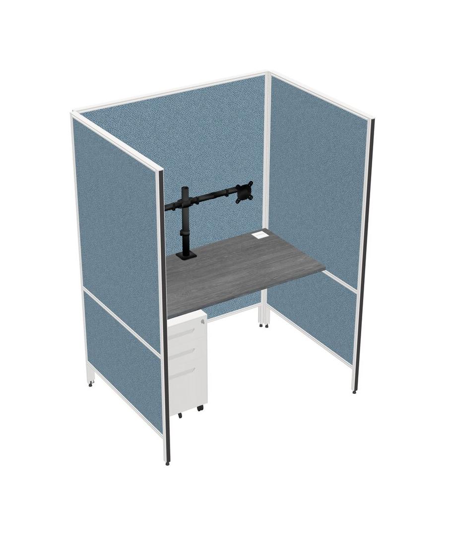 Grey Flexible Panel System For 1 + Metal Mobile Drawers + Monitor Arm (double Arms)