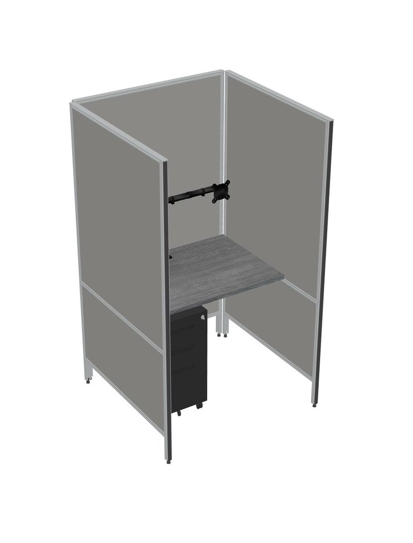 Grey Flexible Panel System For 1 + Metal Mobile Drawers + Monitor Arm (double Arms)