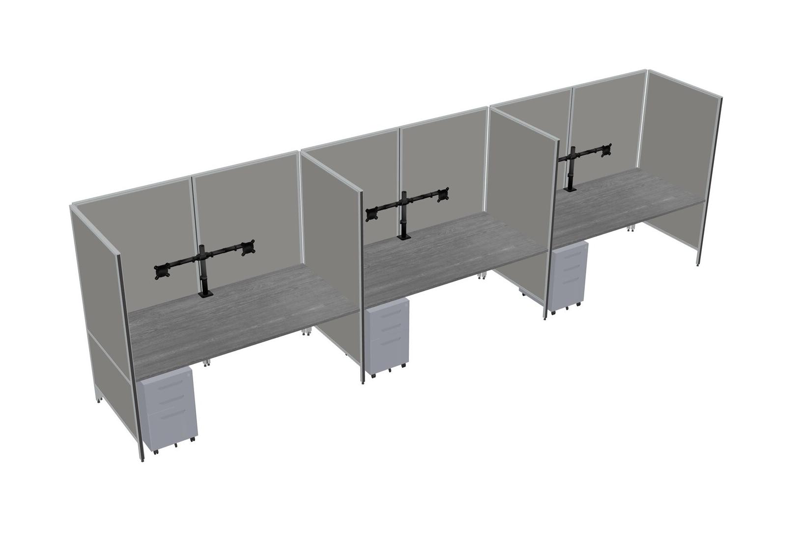 Grey Flexible Panel System For 3 + Metal Mobile Drawers + Monitor Arm (double Arms)