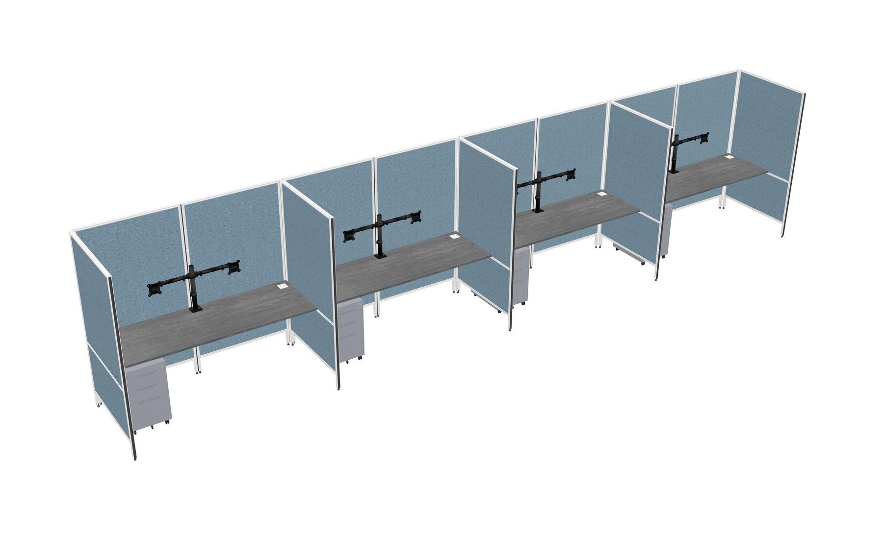 Grey Flexible Panel System For 4 + Metal Mobile Drawers + Monitor Arm (double Arms)