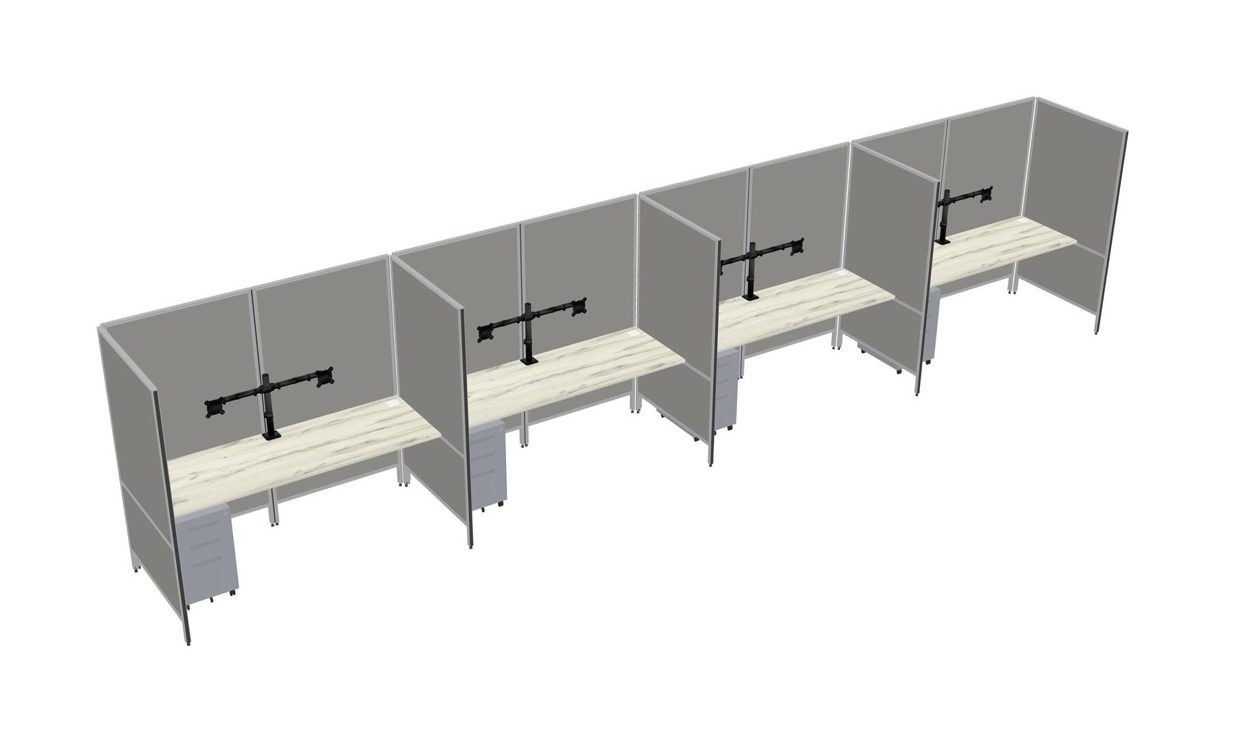 Heinne Holz Flexible Panel System For 4 + Metal Mobile Drawers + Monitor Arm (double Arms)