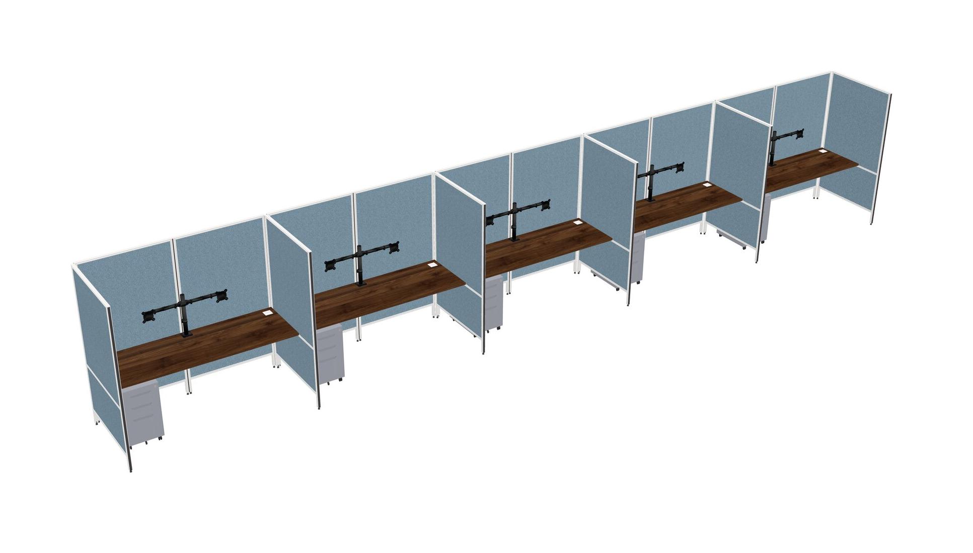 Columbia Walnut Flexible Panel System For 5 + Metal Mobile Drawers + Monitor Arm (double Arms)