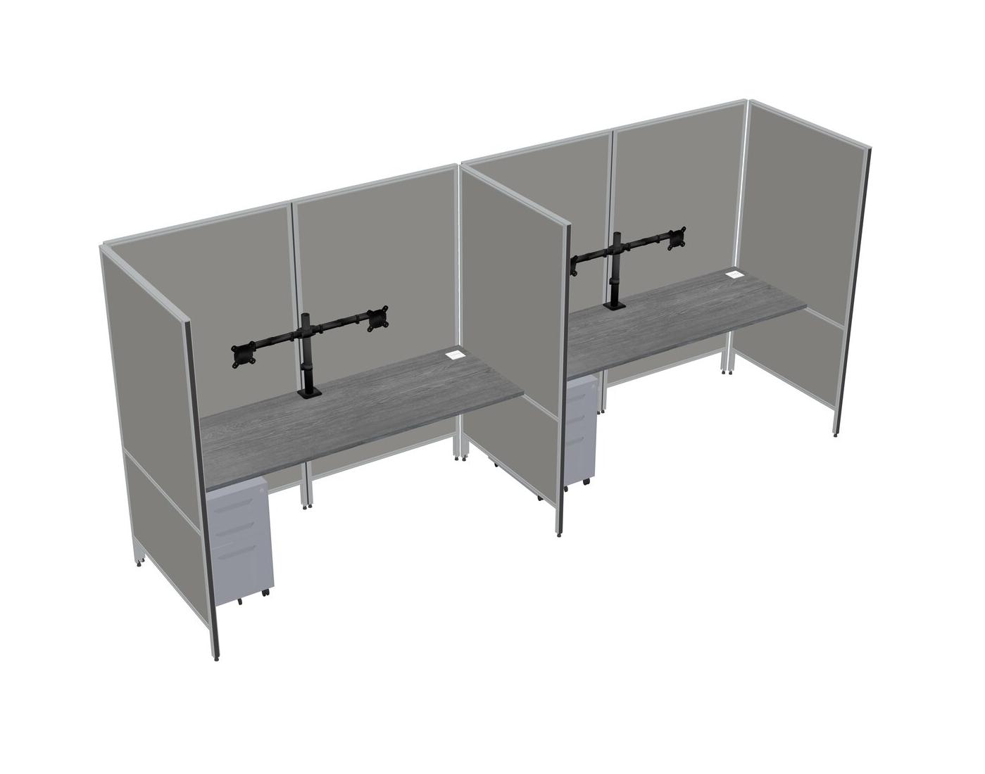 Grey Flexible Panel System For 2 + Metal Mobile Drawers + Monitor Arm (double Arms)