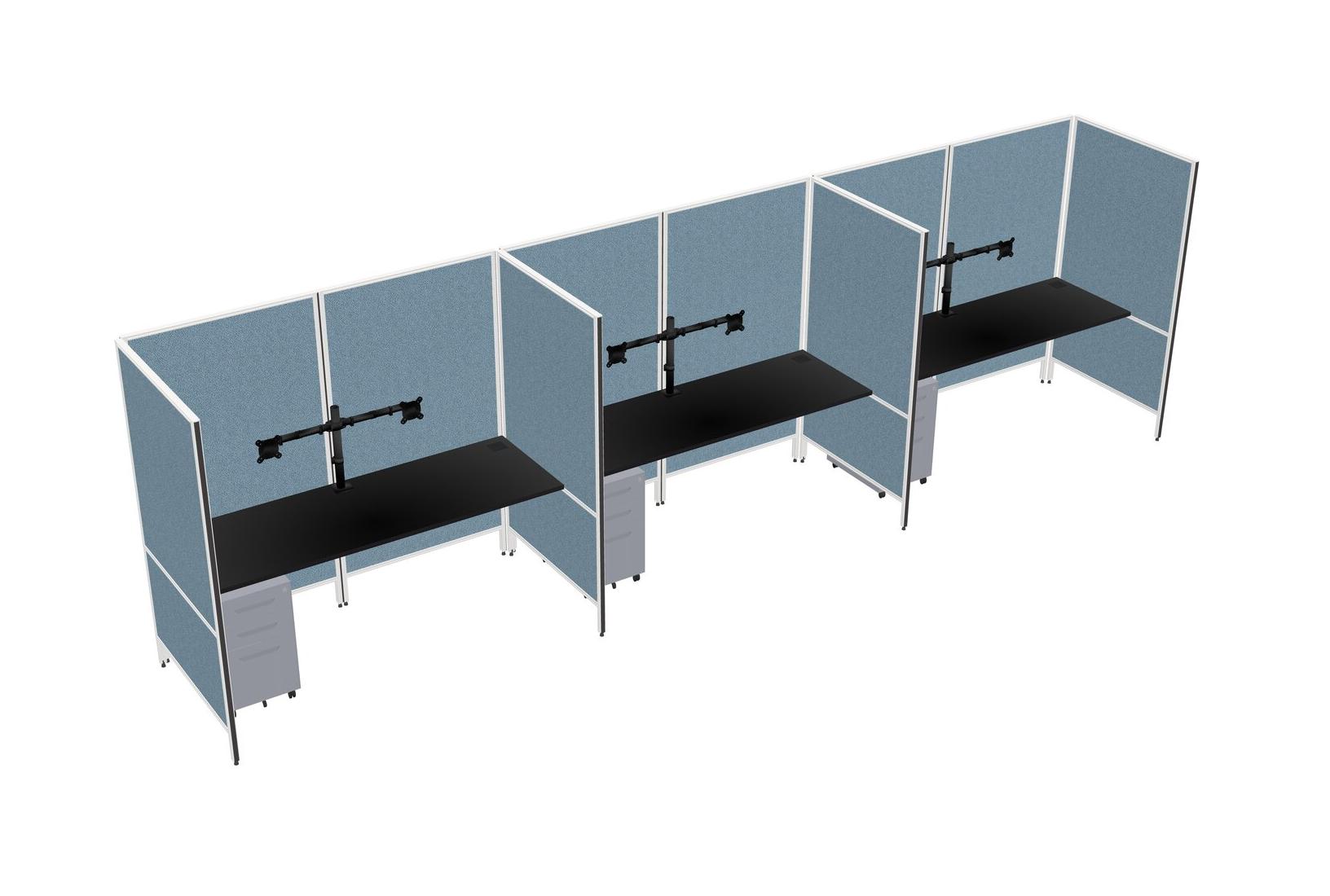 Black Flexible Panel System For 3 + Metal Mobile Drawers + Monitor Arm (double Arms)