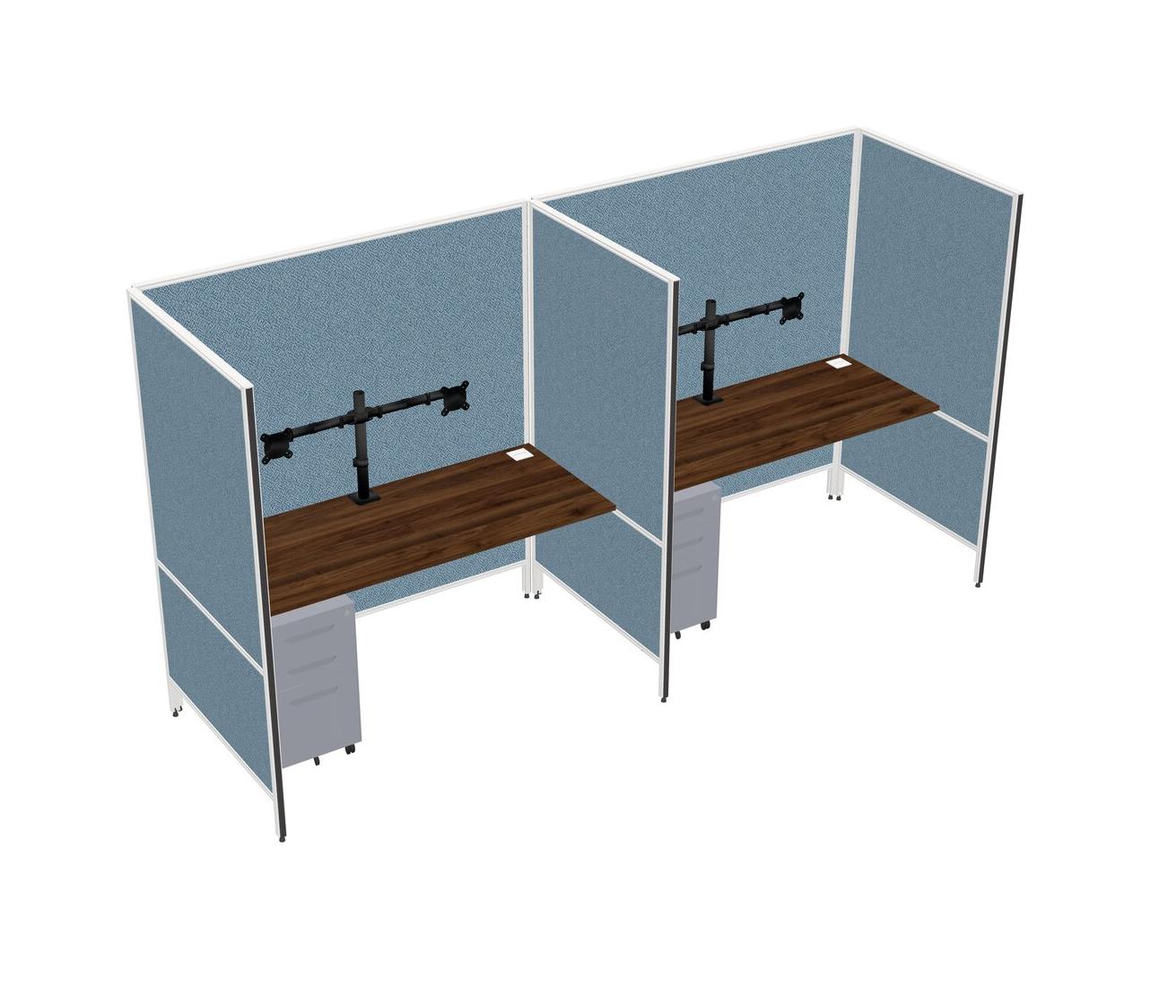 Columbia Walnut Flexible Panel System For 2 + Metal Mobile Drawers + Monitor Arm (double Arms)