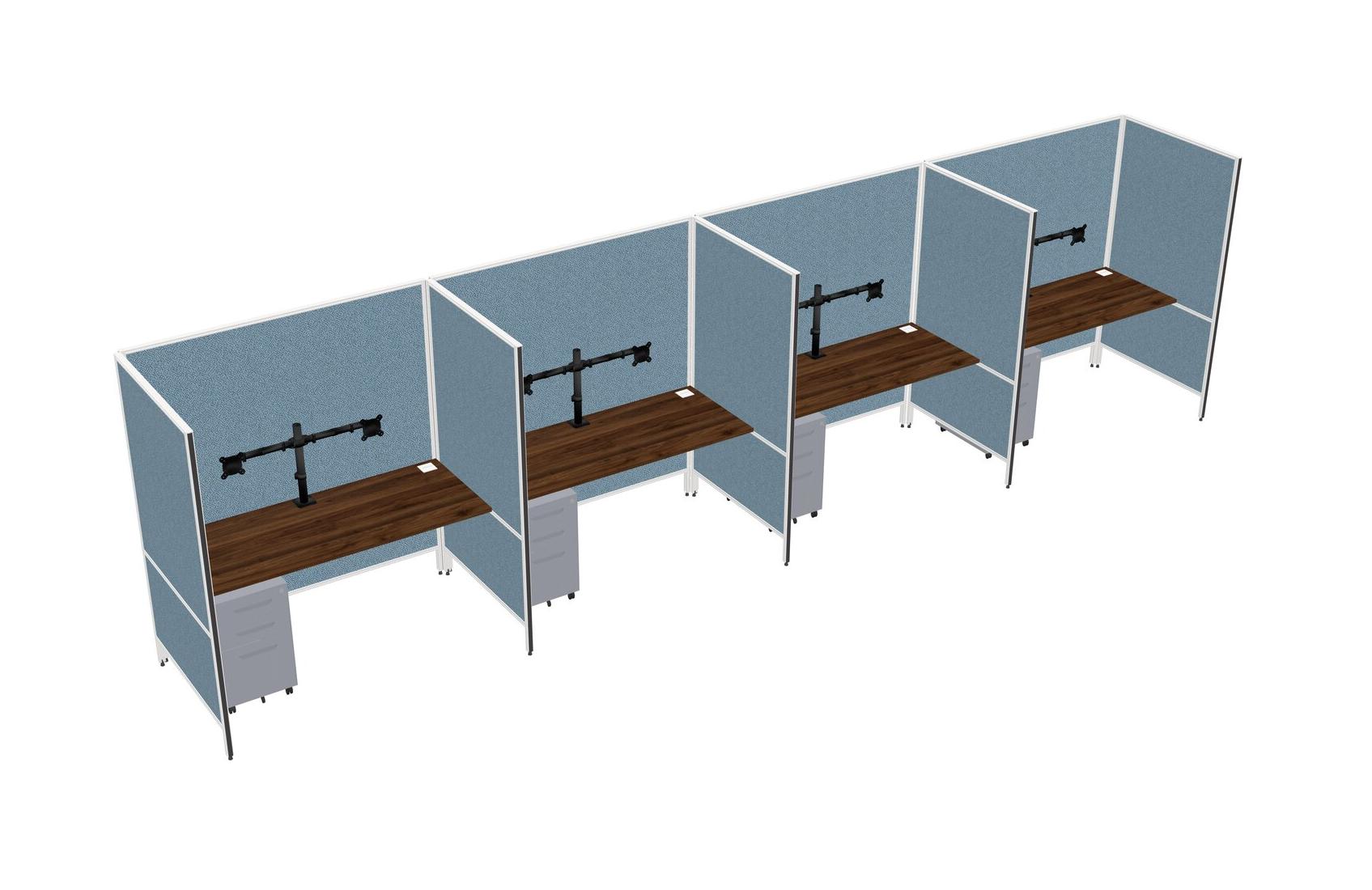 Columbia Walnut Flexible Panel System For 4 + Metal Mobile Drawers + Monitor Arm (double Arms)