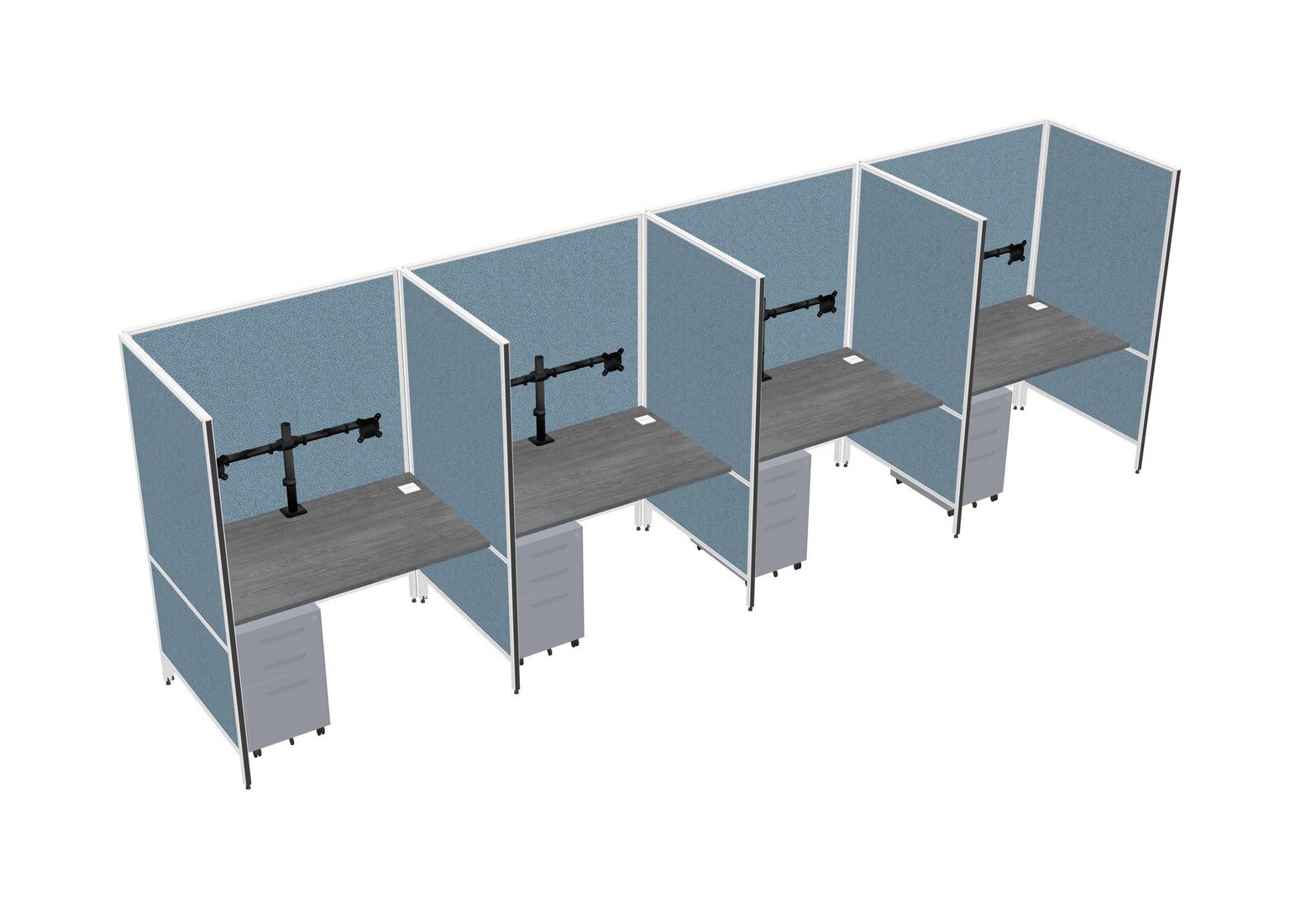 Grey Flexible Panel System For 4 + Metal Mobile Drawers + Monitor Arm (double Arms)