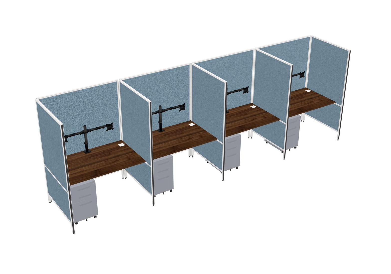 Columbia Walnut Flexible Panel System For 4 + Metal Mobile Drawers + Monitor Arm (double Arms)