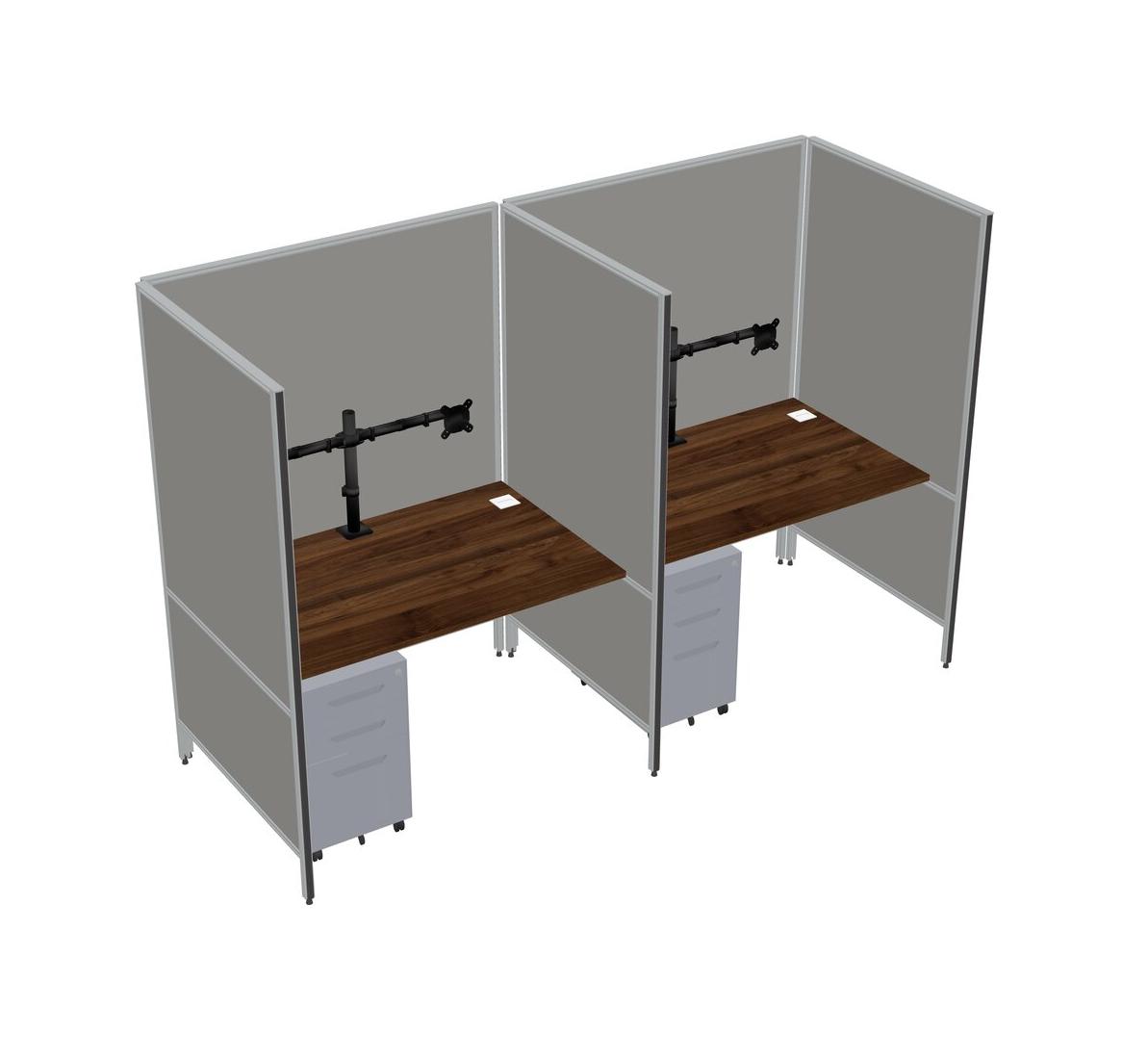 Columbia Walnut Flexible Panel System For 2 + Metal Mobile Drawers + Monitor Arm (double Arms)