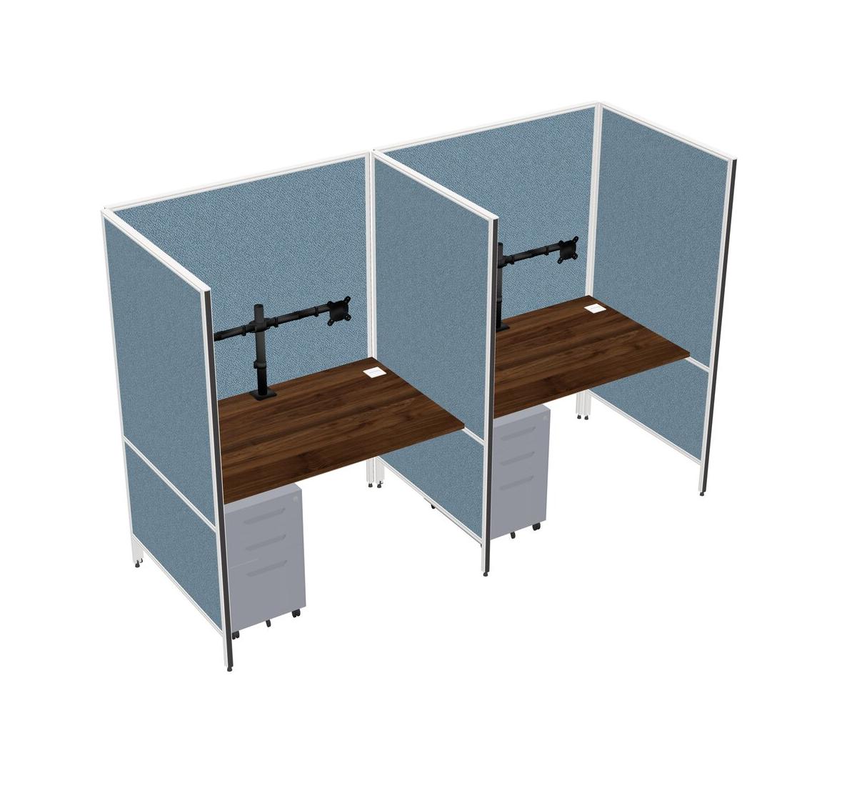 Columbia Walnut Flexible Panel System For 2 + Metal Mobile Drawers + Monitor Arm (double Arms)
