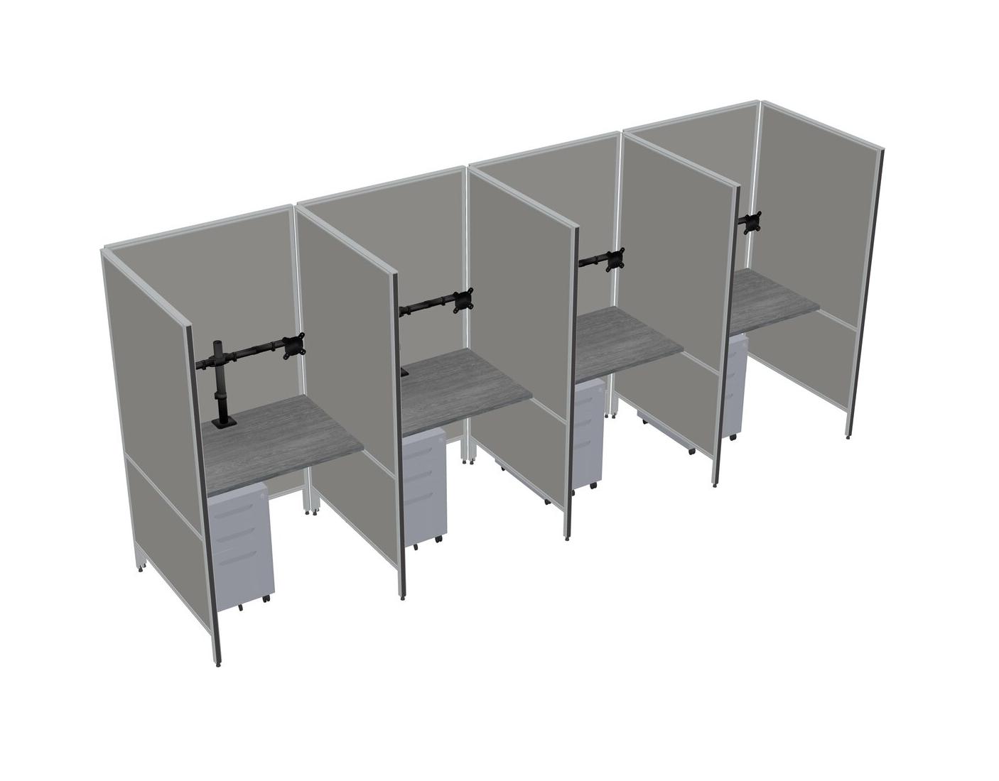 Grey Flexible Panel System For 4 + Metal Mobile Drawers + Monitor Arm (double Arms)