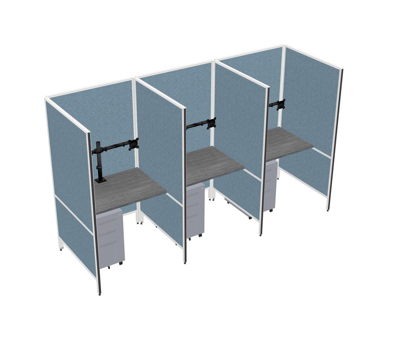 Grey Flexible Panel System For 3 + Metal Mobile Drawers + Monitor Arm (double Arms)