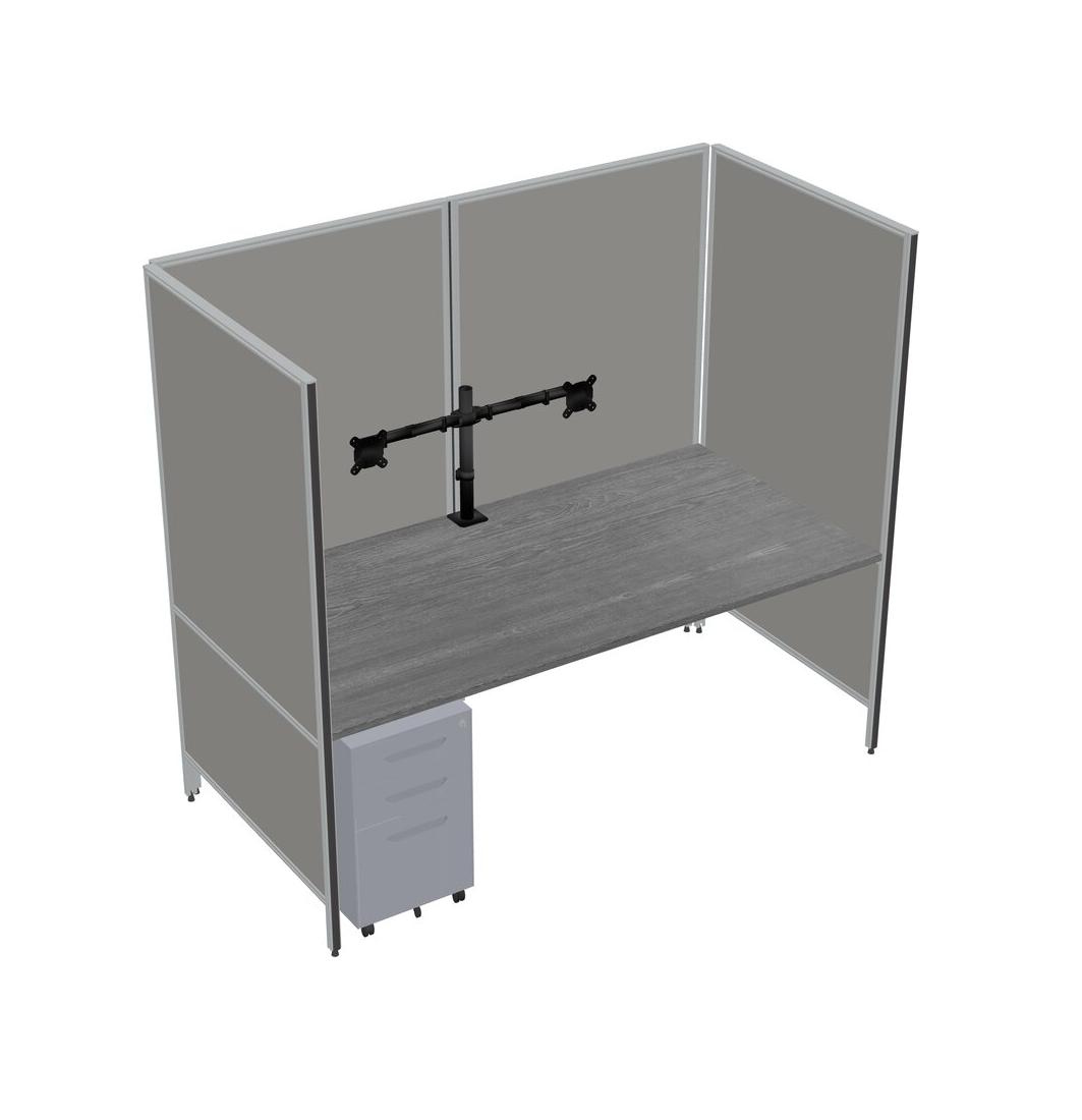 Grey Flexible Panel System For 1 + Metal Mobile Drawers + Monitor Arm (double Arms)