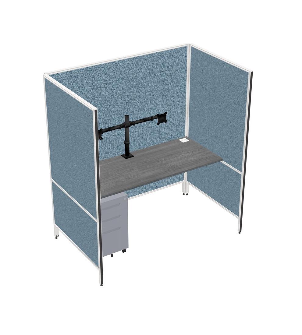 Grey Flexible Panel System For 1 + Metal Mobile Drawers + Monitor Arm (double Arms)