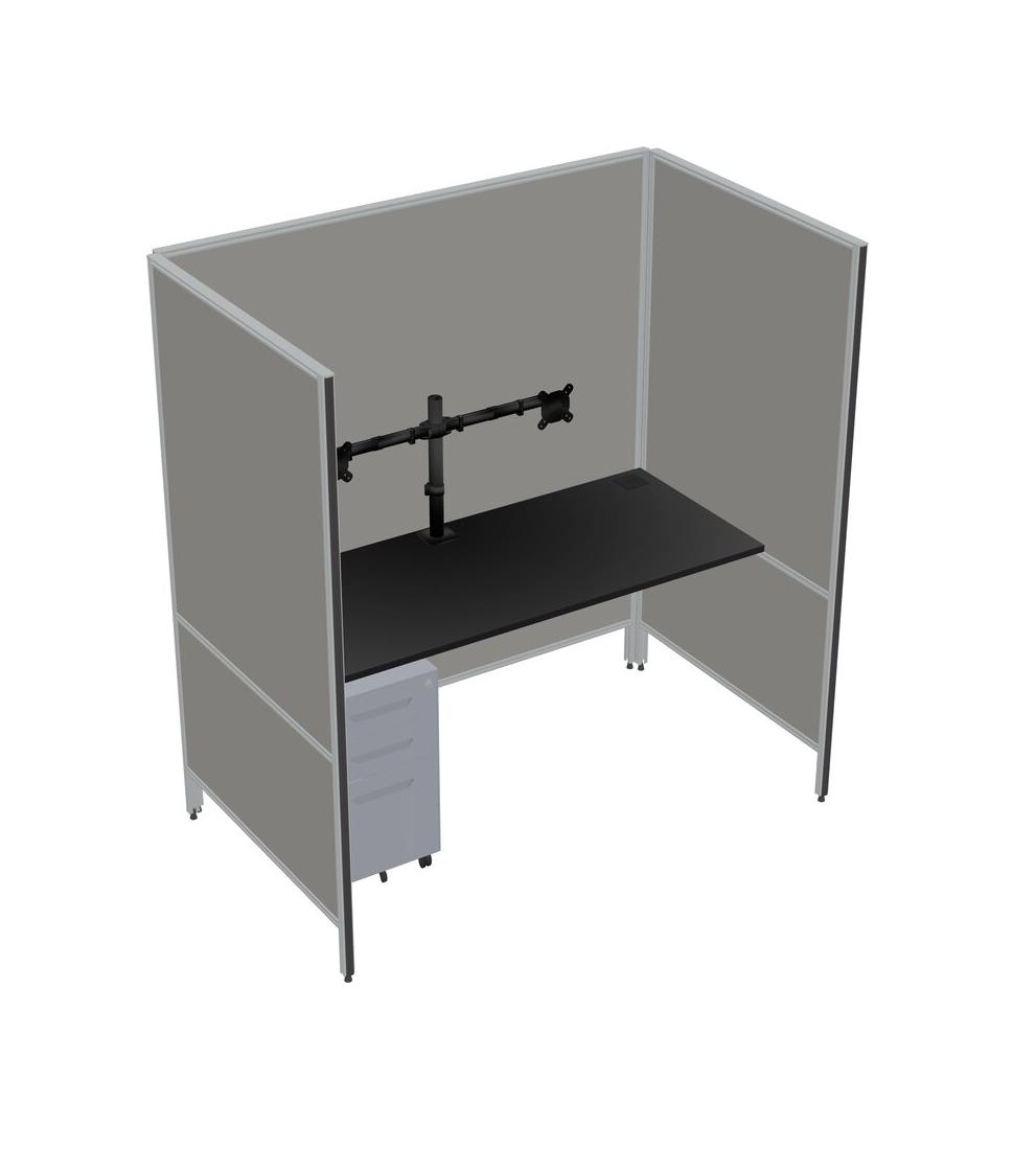 Black Flexible Panel System For 1 + Metal Mobile Drawers + Monitor Arm (double Arms)
