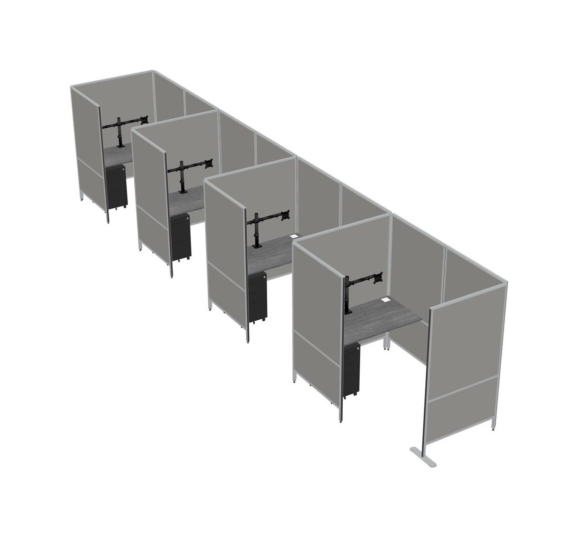 Grey Small Private Panel System + Panel System + Metal Mobile Drawers