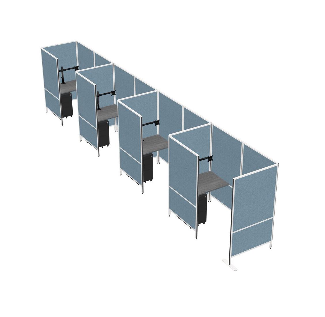 Grey Small Private Panel System + Panel System + Metal Mobile Drawers