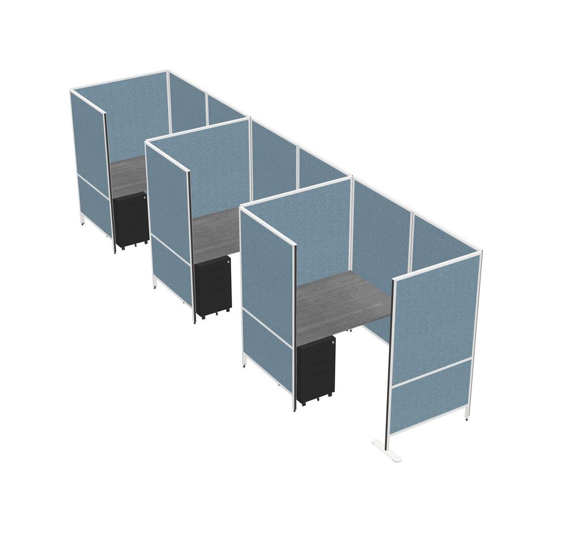 Grey Small Private Panel System + Panel System + Metal Mobile Drawers