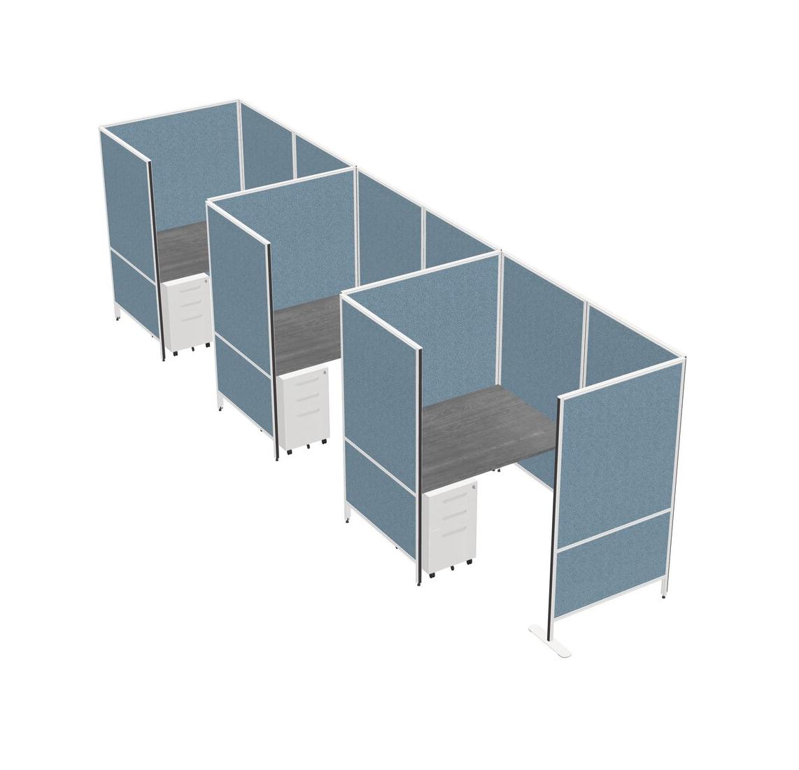 Grey Small Private Panel System + Panel System + Metal Mobile Drawers