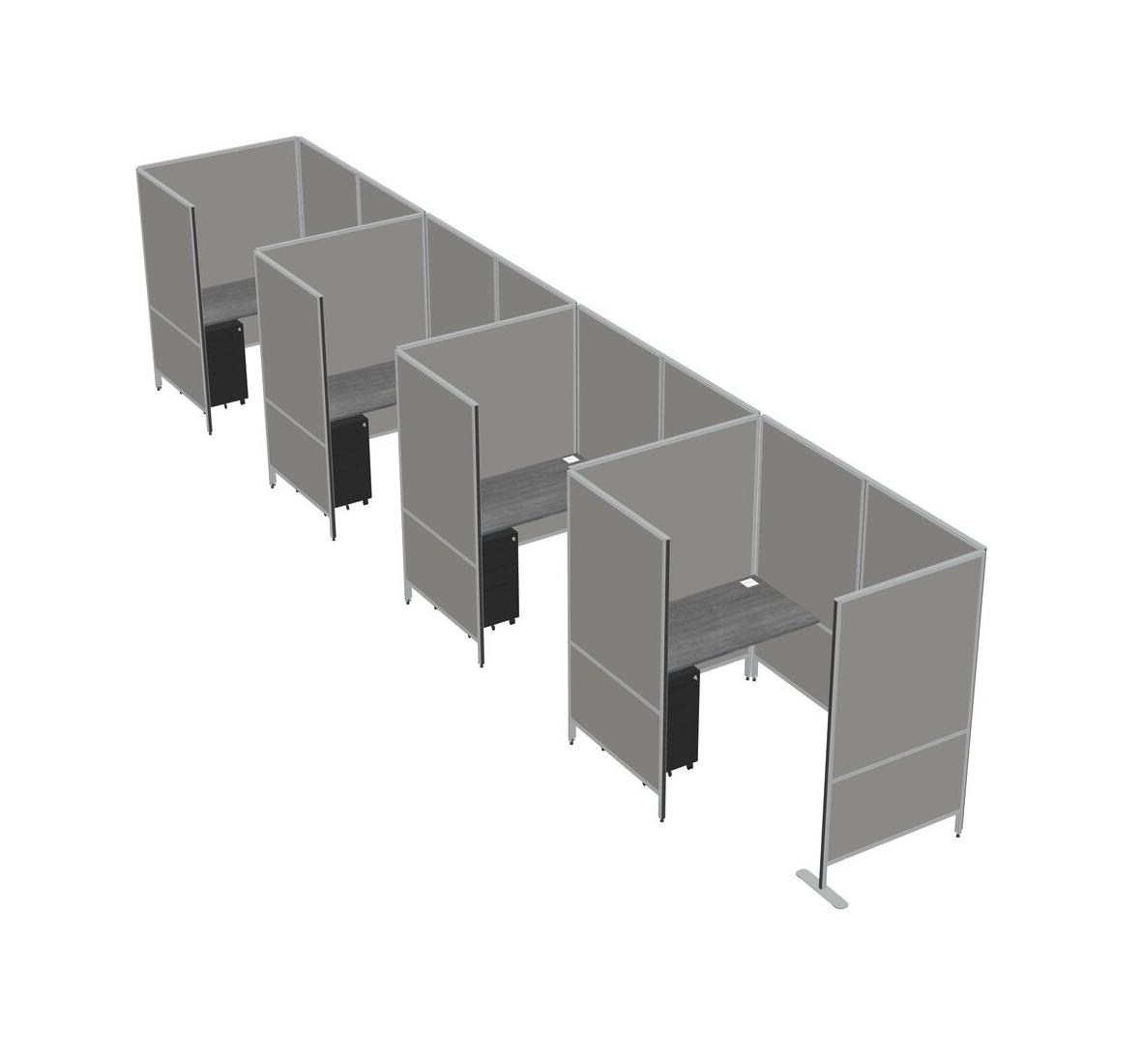 Grey Small Private Panel System + Panel System + Metal Mobile Drawers