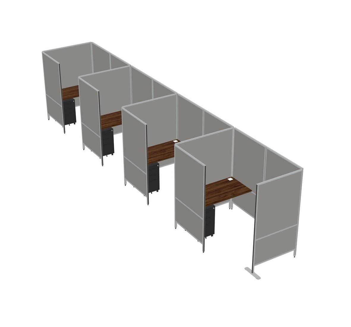 Columbia Walnut Small Private Panel System + Panel System + Metal Mobile Drawers