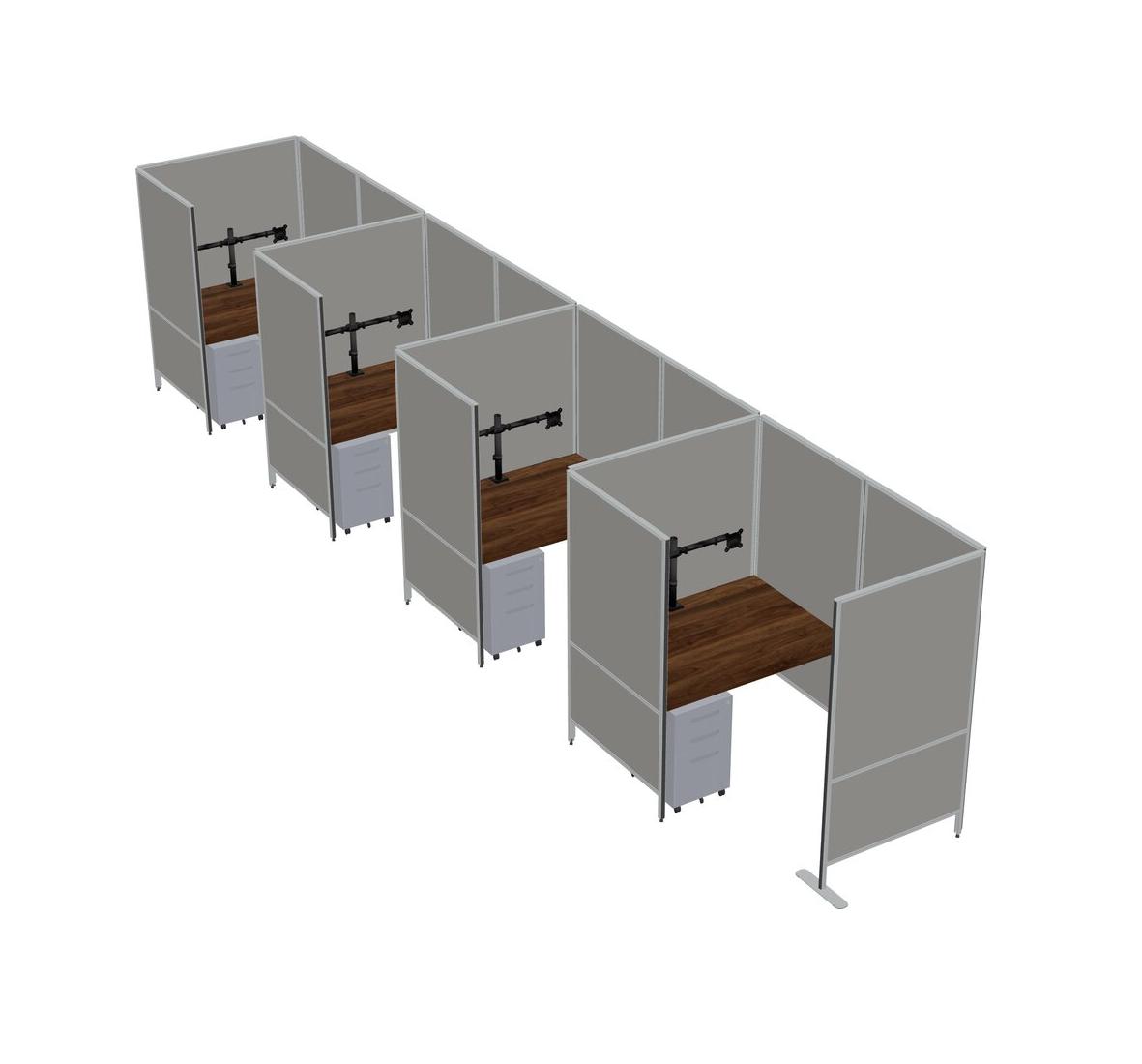 Columbia Walnut Small Private Panel System + Panel System + Metal Mobile Drawers