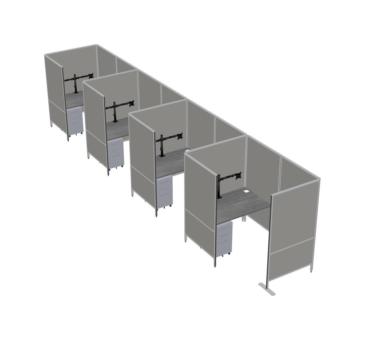Grey Small Private Panel System + Panel System + Metal Mobile Drawers