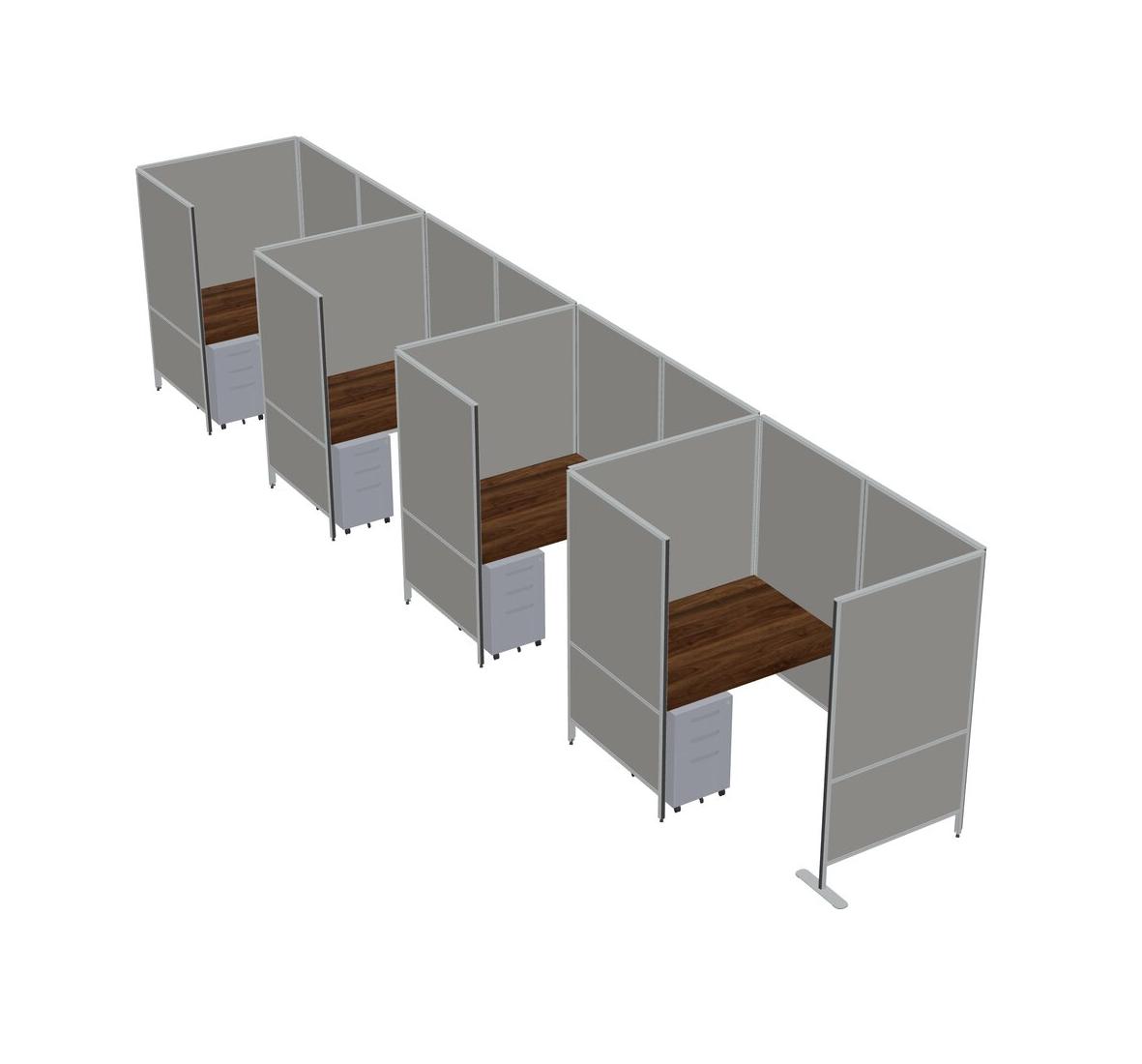 Columbia Walnut Small Private Panel System + Panel System + Metal Mobile Drawers