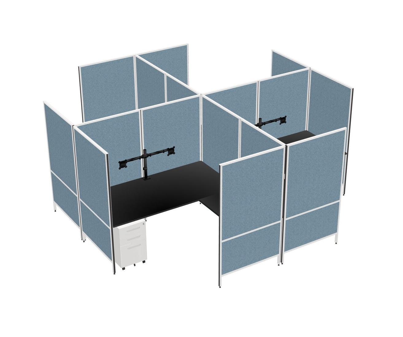 Black Modern Modular Quad L-Shaped Panel System + Metal Mobile Drawers + Monitor Arm (double Arms)