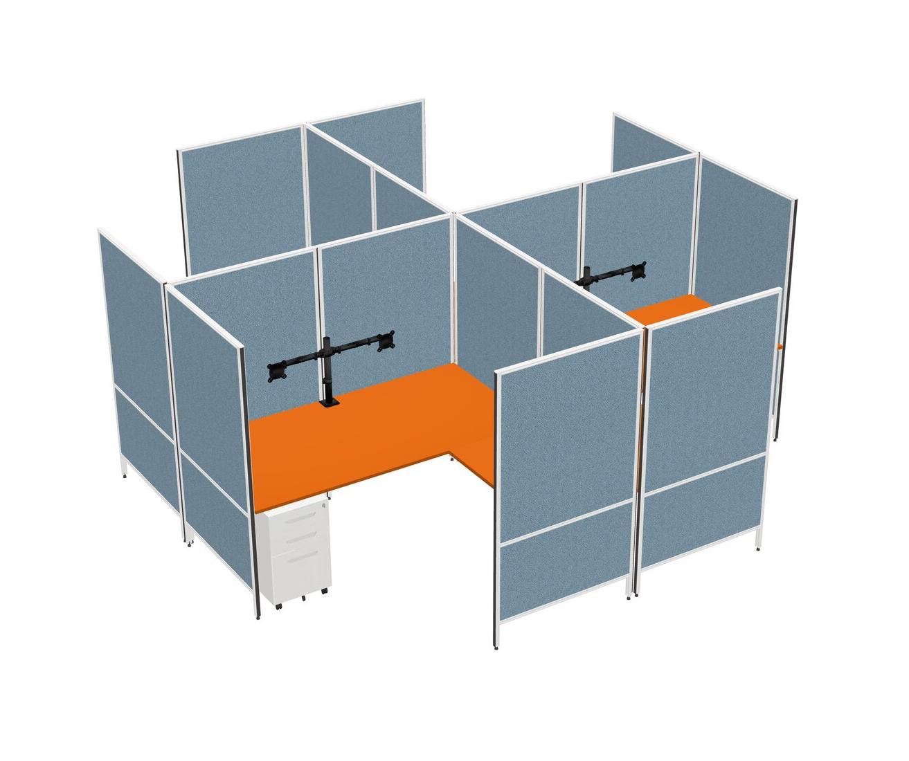 Orange Modern Modular Quad L-Shaped Panel System + Metal Mobile Drawers + Monitor Arm (double Arms)