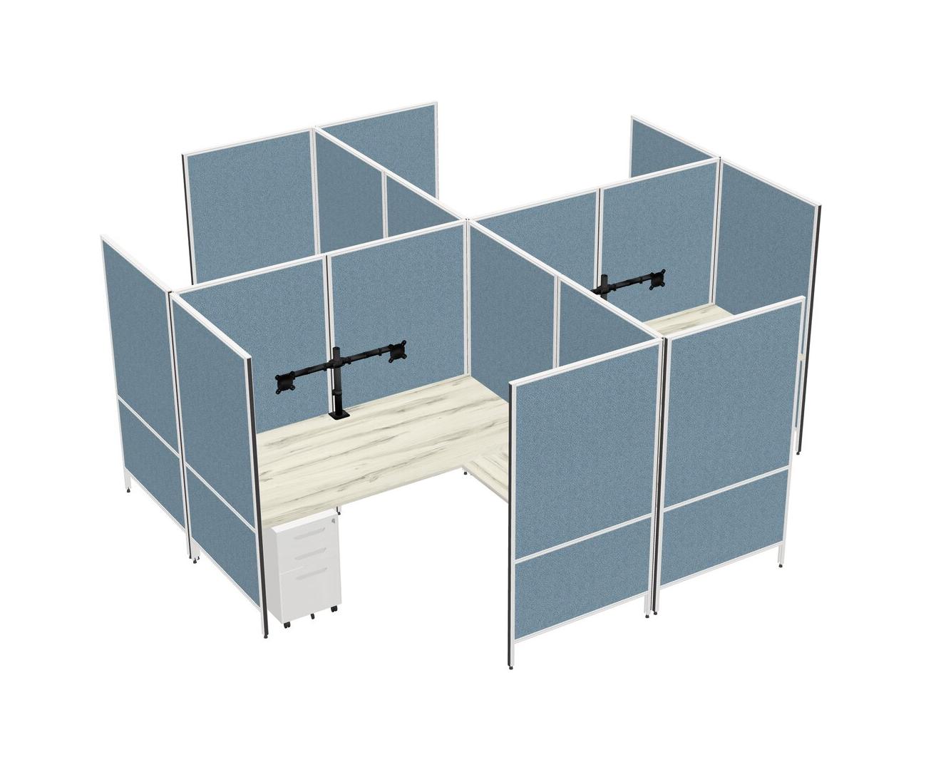 Heinne Holz Modern Modular Quad L-Shaped Panel System + Metal Mobile Drawers + Monitor Arm (double Arms)