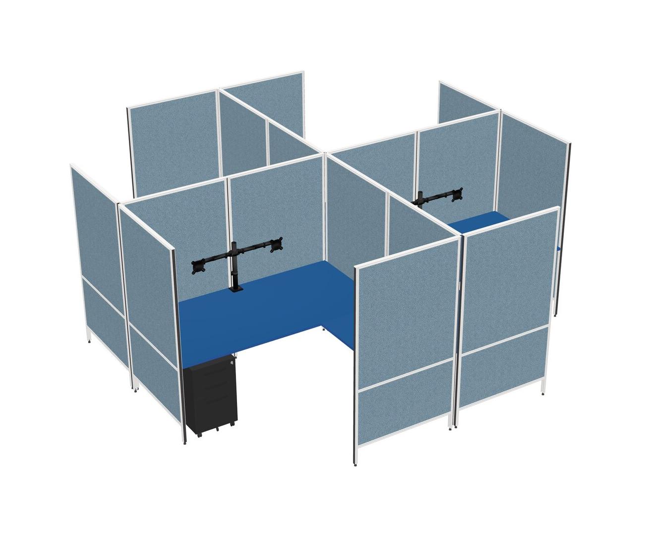 Prism Blue Modern Modular Quad L-Shaped Panel System + Metal Mobile Drawers + Monitor Arm (double Arms)
