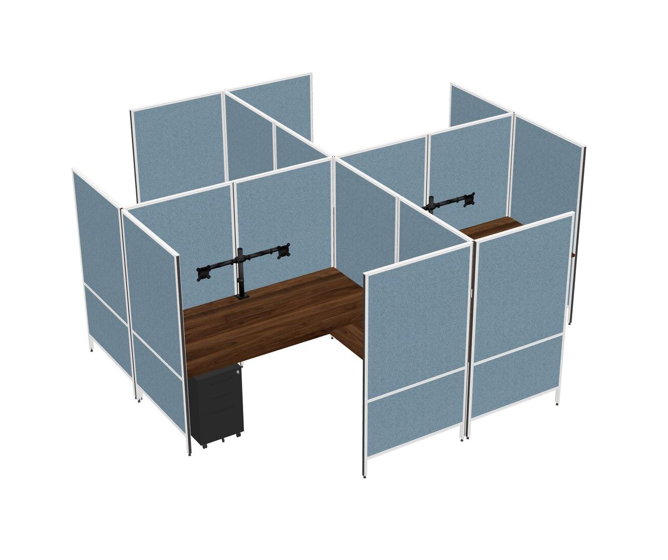 Columbia Walnut Modern Modular Quad L-Shaped Panel System + Metal Mobile Drawers + Monitor Arm (double Arms)