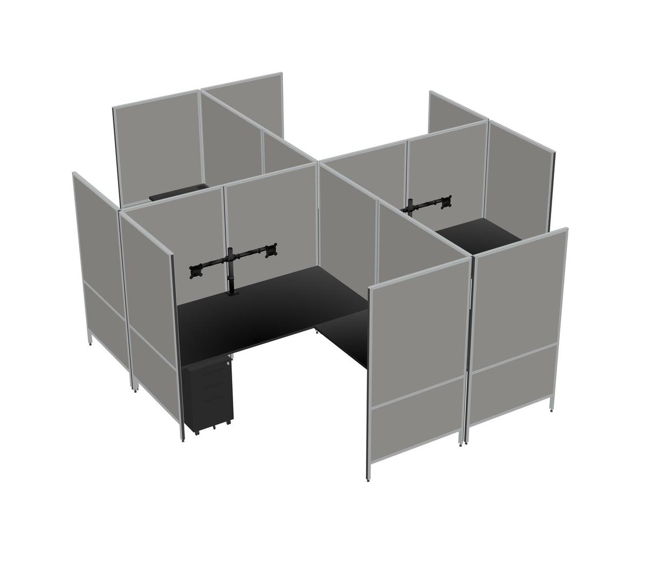 Black Modern Modular Quad L-Shaped Panel System + Metal Mobile Drawers + Monitor Arm (double Arms)