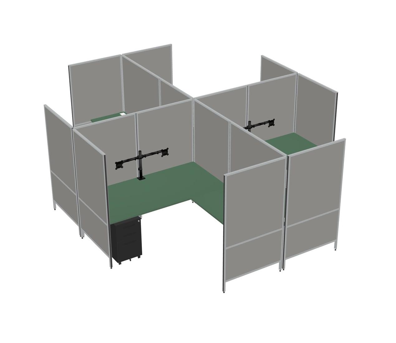 Green Modern Modular Quad L-Shaped Panel System + Metal Mobile Drawers + Monitor Arm (double Arms)