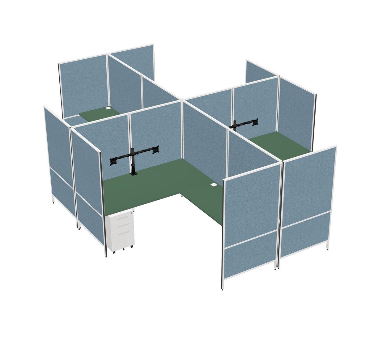 Green Modern Modular Quad L-Shaped Panel System + Metal Mobile Drawers + Monitor Arm (double Arms)
