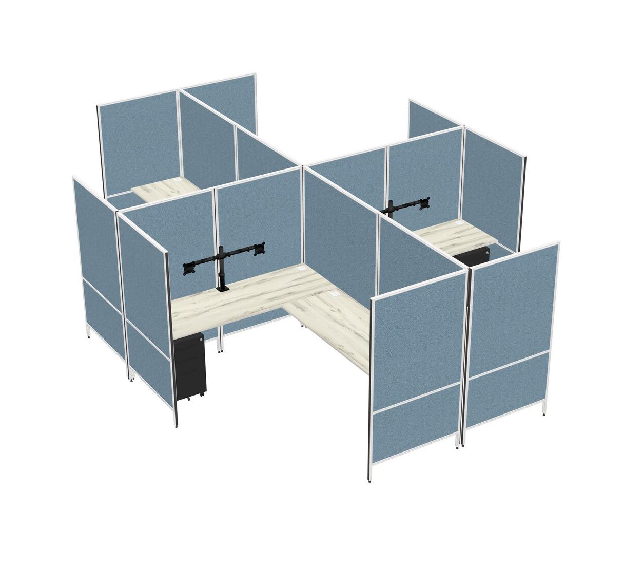 Heinne Holz Modern Modular Quad L-Shaped Panel System + Metal Mobile Drawers + Monitor Arm (double Arms)