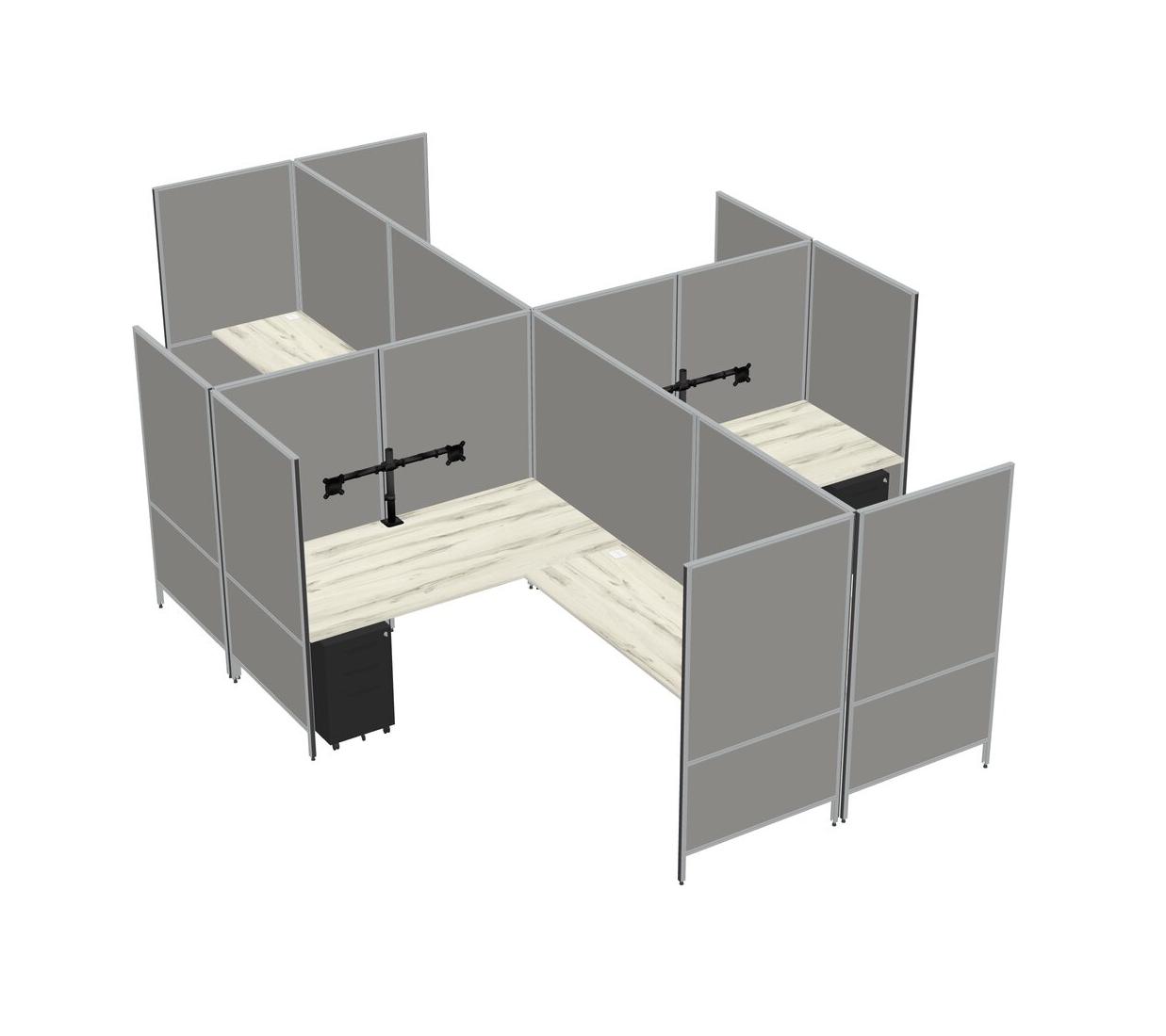 Heinne Holz Modern Modular Quad L-Shaped Panel System + Metal Mobile Drawers + Monitor Arm (double Arms)