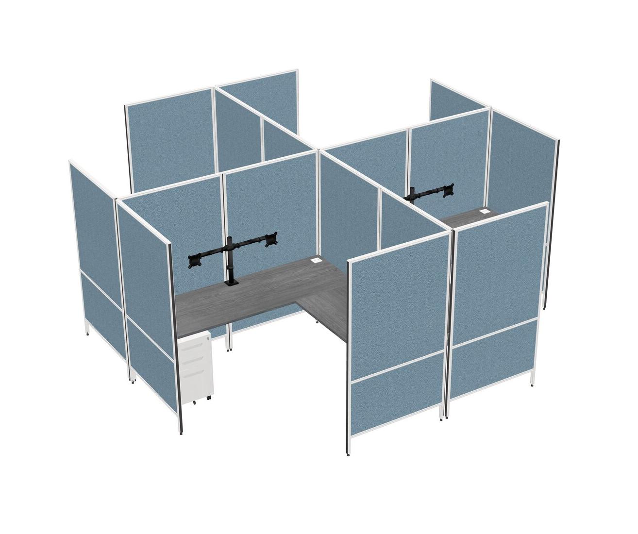 Grey Modern Modular Quad L-Shaped Panel System + Metal Mobile Drawers + Monitor Arm (double Arms)