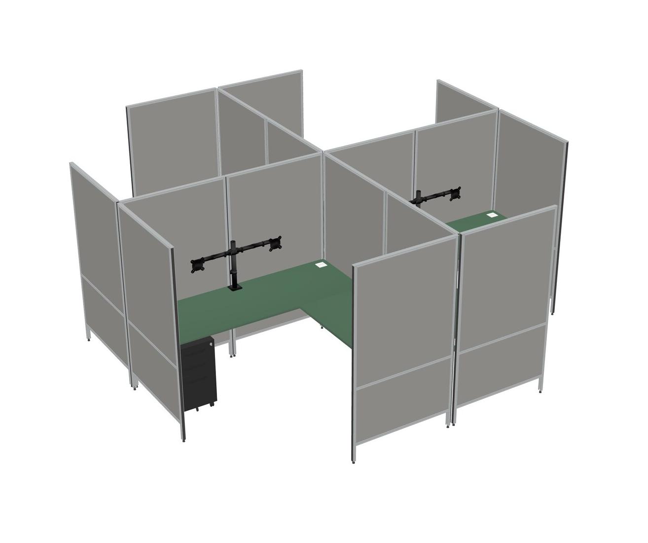 Green Modern Modular Quad L-Shaped Panel System + Metal Mobile Drawers + Monitor Arm (double Arms)