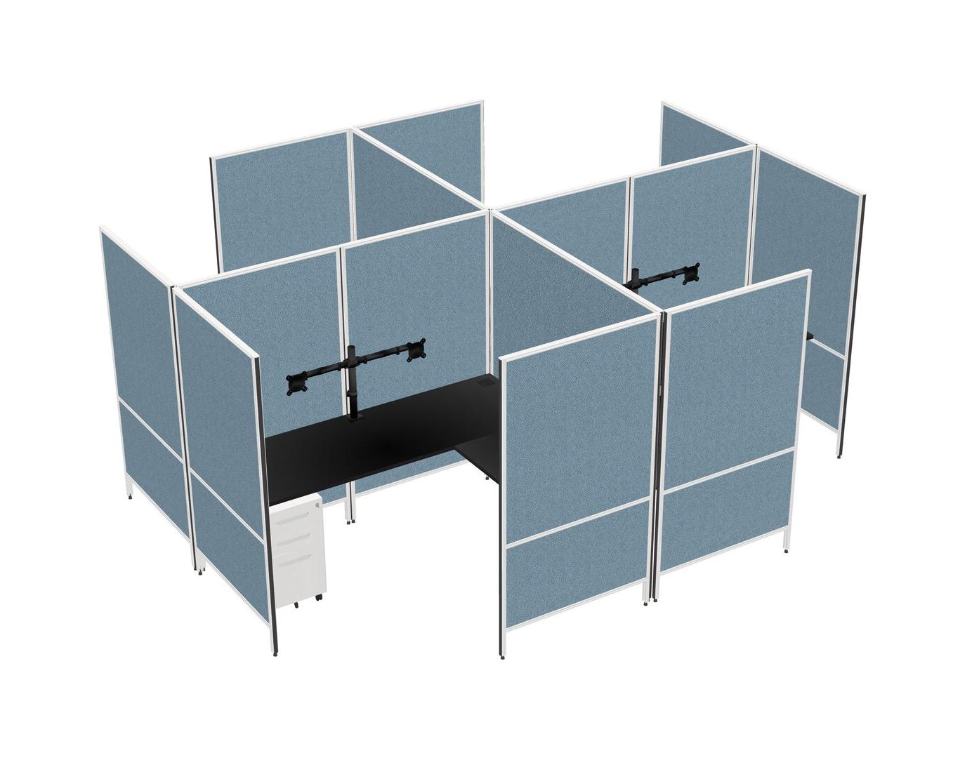 Black Modern Modular Quad L-Shaped Panel System + Metal Mobile Drawers + Monitor Arm (double Arms)