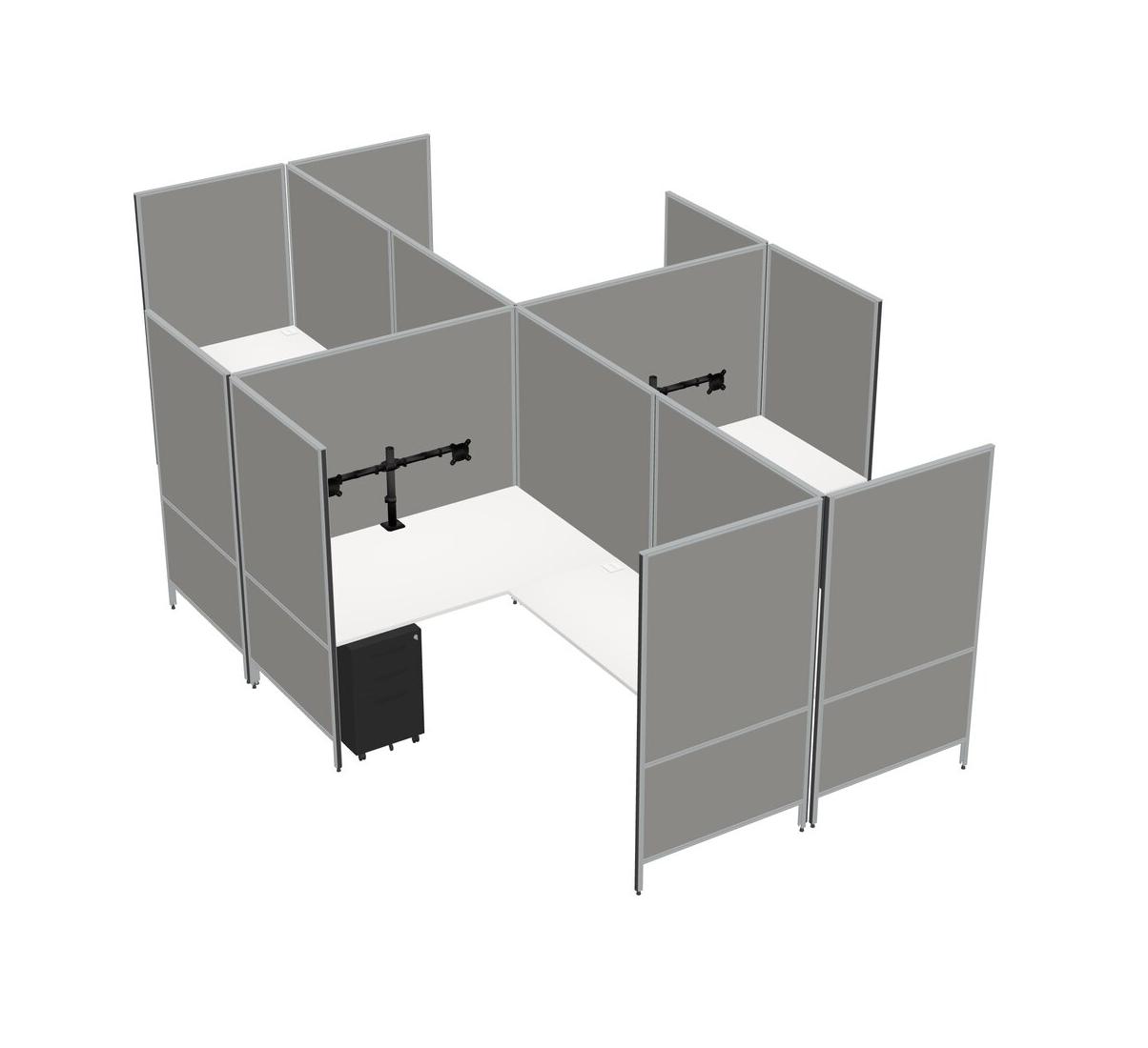 White Modern Modular Quad L-Shaped Panel System + Metal Mobile Drawers + Monitor Arm (double Arms)