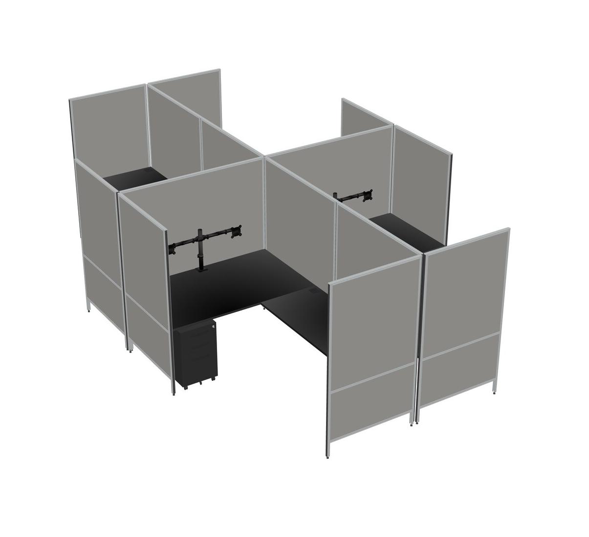 Black Modern Modular Quad L-Shaped Panel System + Metal Mobile Drawers + Monitor Arm (double Arms)