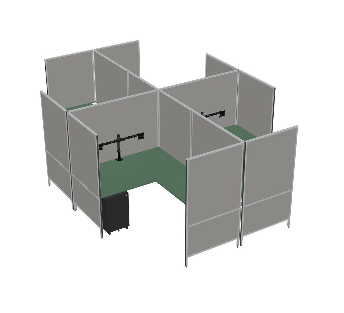 Green Modern Modular Quad L-Shaped Panel System + Metal Mobile Drawers + Monitor Arm (double Arms)